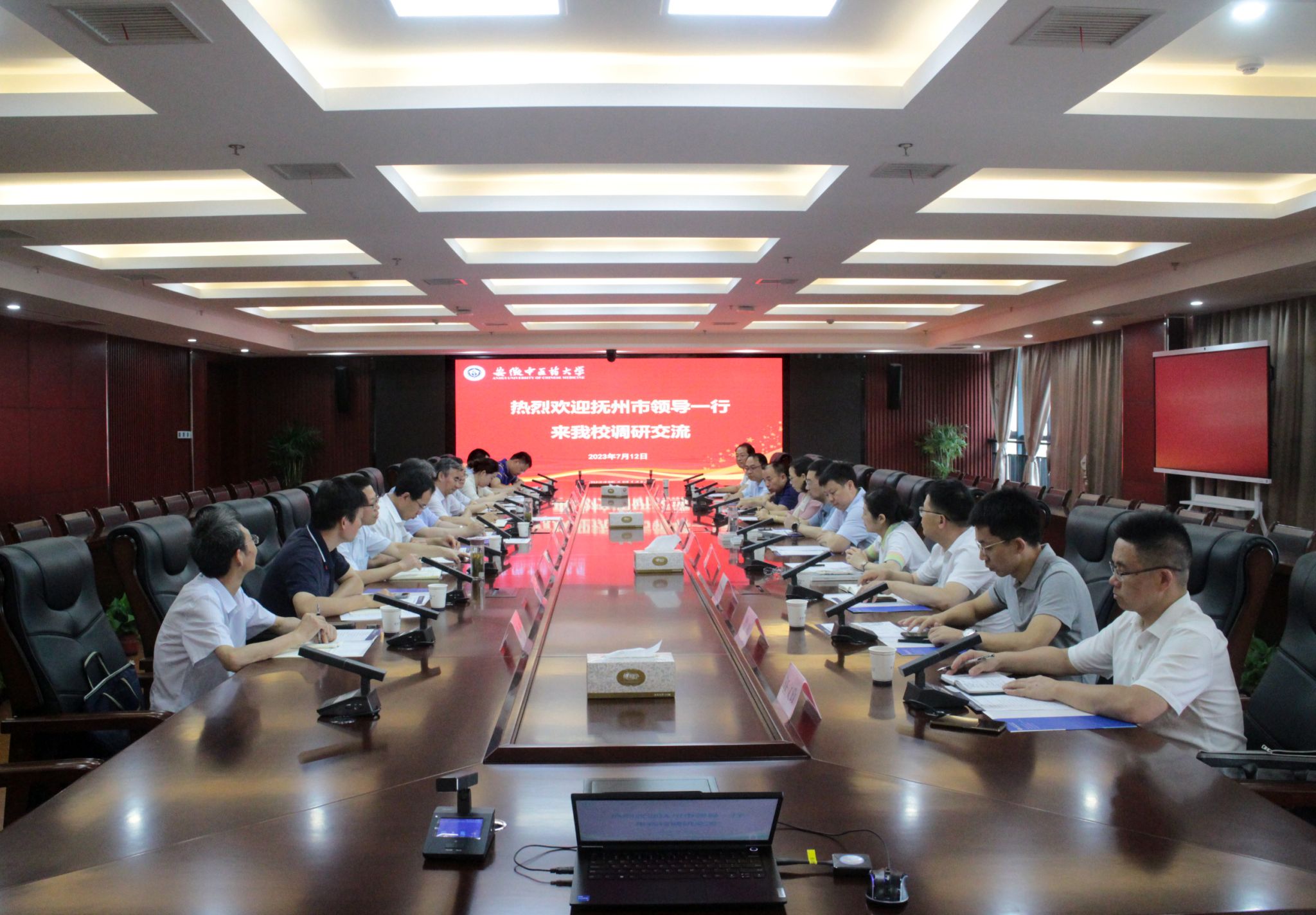 7月12日上午,抚州市人民政府副市长黄智迅率队来访我校,调研交流“新安医学”流派传承创新发展工作。学校党委常委、副校长魏骅出席会议。学校研究生院、科技处、医院事务管理处、中医学院和第一临床医学院等相关负责人参加座谈。会议由科技处处长吴德玲主持。