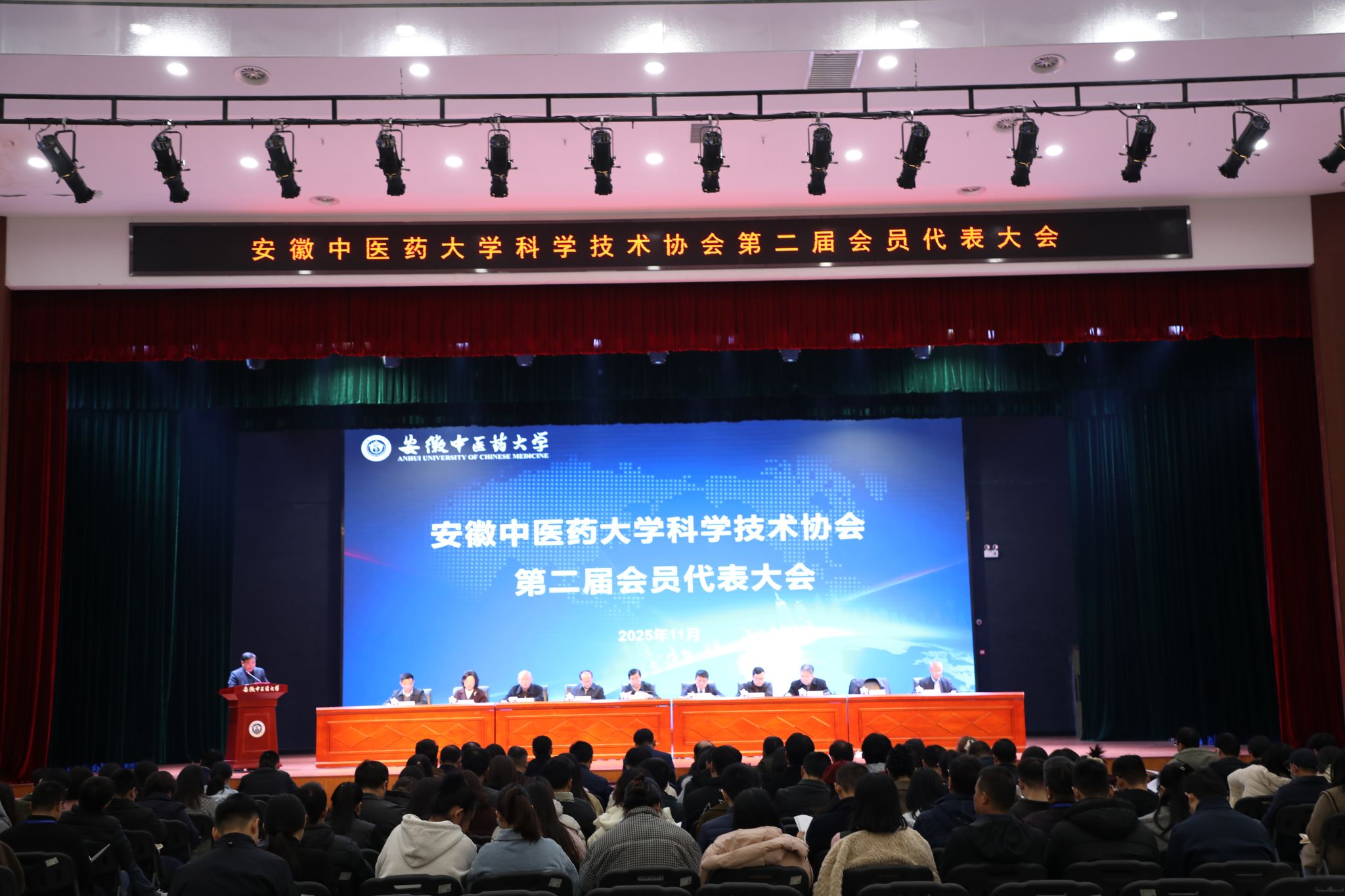 2025年11月21日下午,安徽中医药大学科学技术协会第二届会员代表大会在少荃湖校区大学生活动中心隆重举行。安徽省科协党组成员、副主席纪光水,安徽省科协组织人事部部长陈宏方,校领导谢瑞瑾、许钒、周新发、魏骅、詹灵杰,安徽中医药大学科学技术协会第一届委员会主席李泽庚,党委常委董玉节、冯祥,科技处以及300余名校科协委员参加会议,会议由魏骅主持。