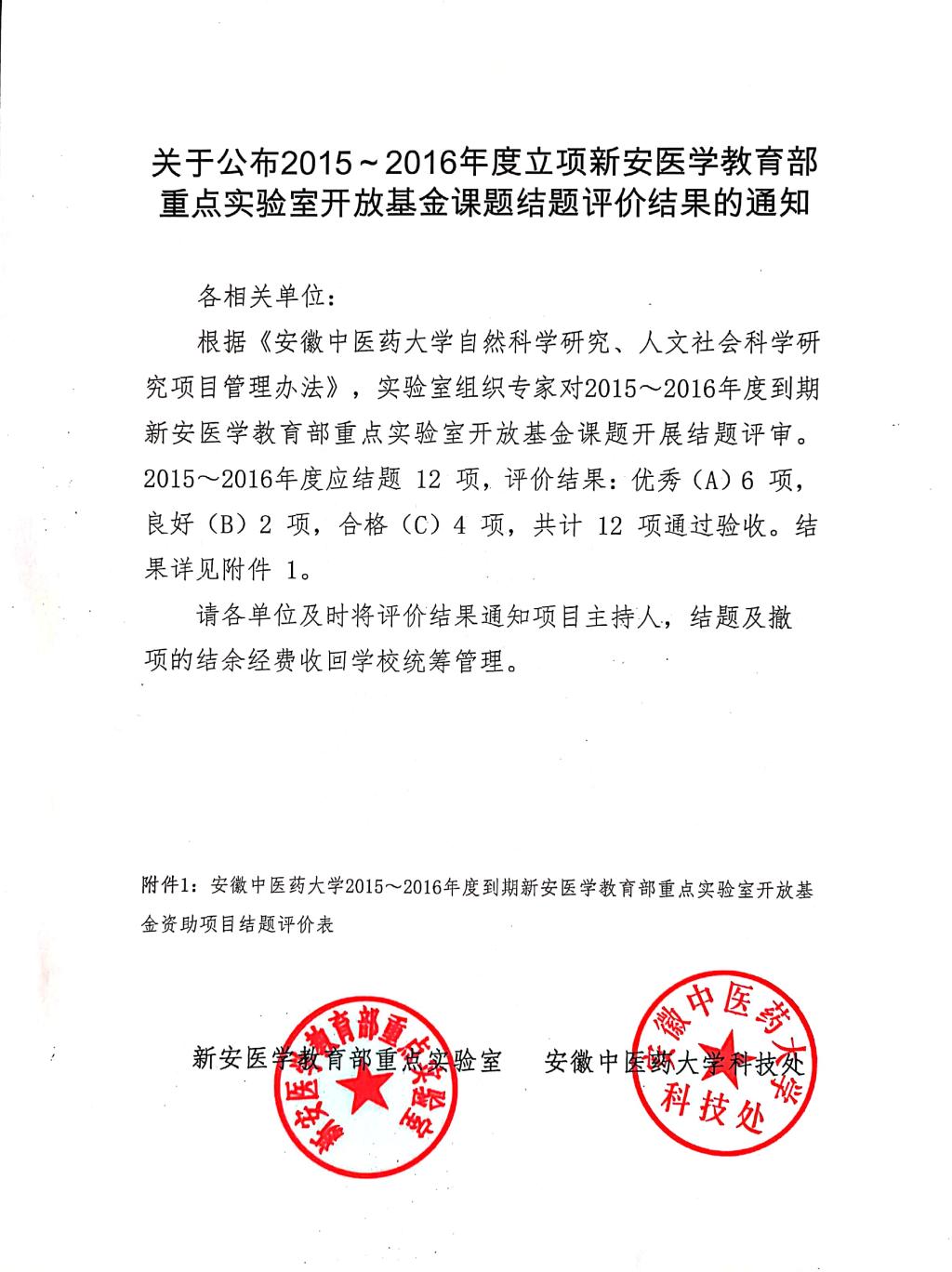 上一条:关于公布2017-2018年度立项新安医学教育部重点实验室开放基金资助项目结题评价结果的通知