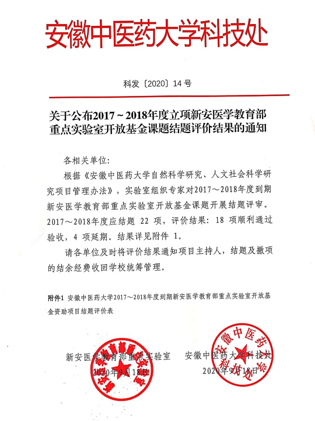 下一条:关于公布2015-2016年度立项新安医学教育部重点实验室开放基金课题结题评价结果的通知