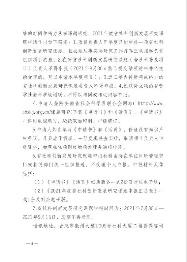 2021年度省社科创新发展研究课题申报材料(含《申请书》和《活页》)