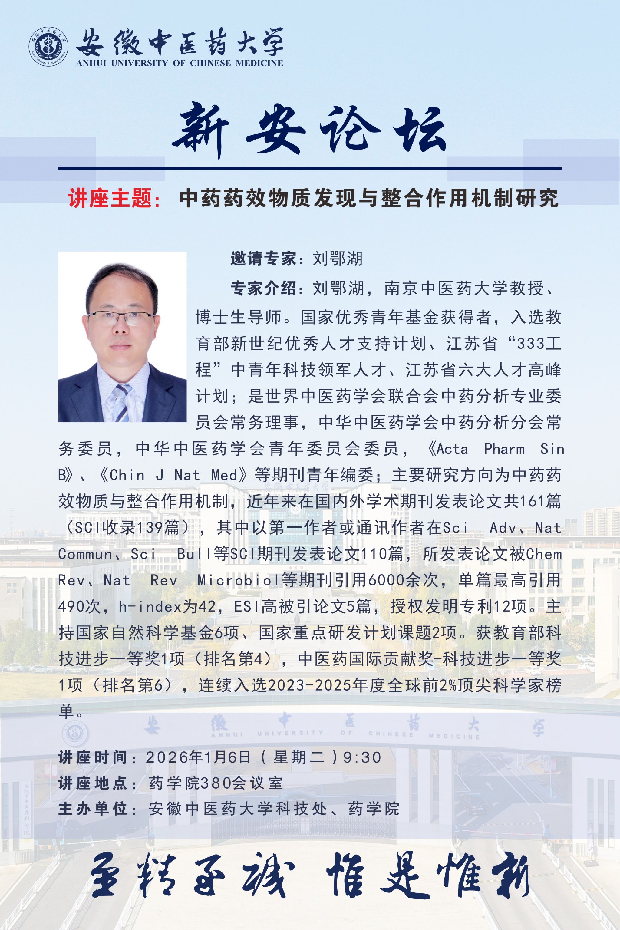 【学术讲座】中药药效物质发现与整合作用机制研究