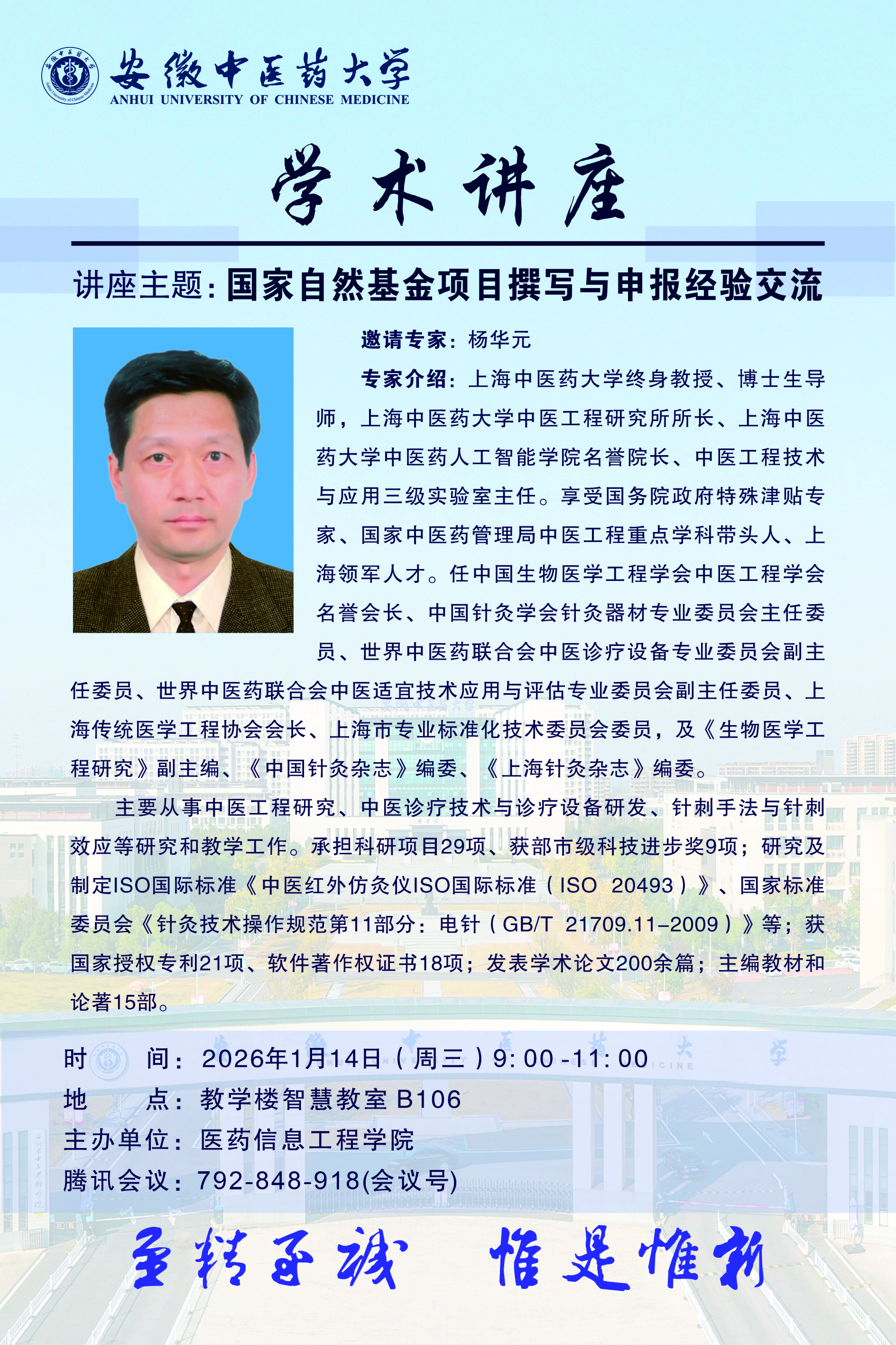 【学术讲座】如何脱颖而出 -浅谈中医药领域国家自然科学基金项目申报撰写策略