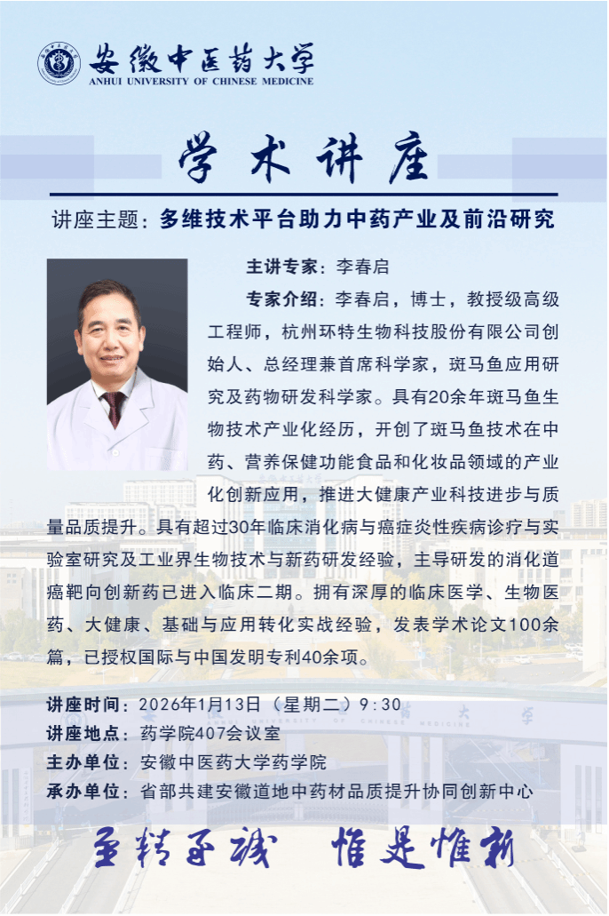 【学术讲座】多维技术平台助力中药产业及前沿研究